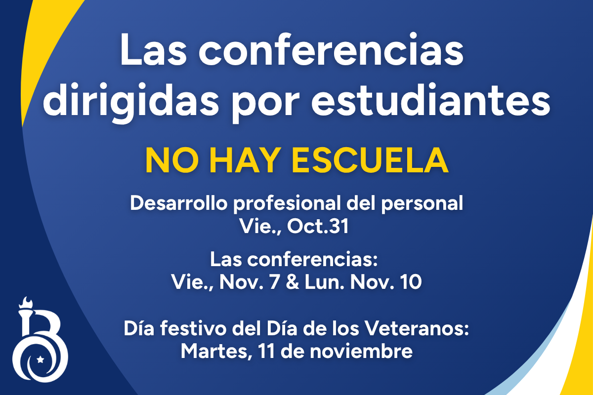 Conferences & Veterans Day holiday: No school 10/31, 11/7, 11/10 and 11/11